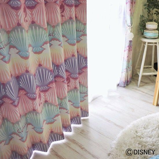 【Disney】おしゃれなディズニーカーテン ≪プリンセス シェル/ピンク≫