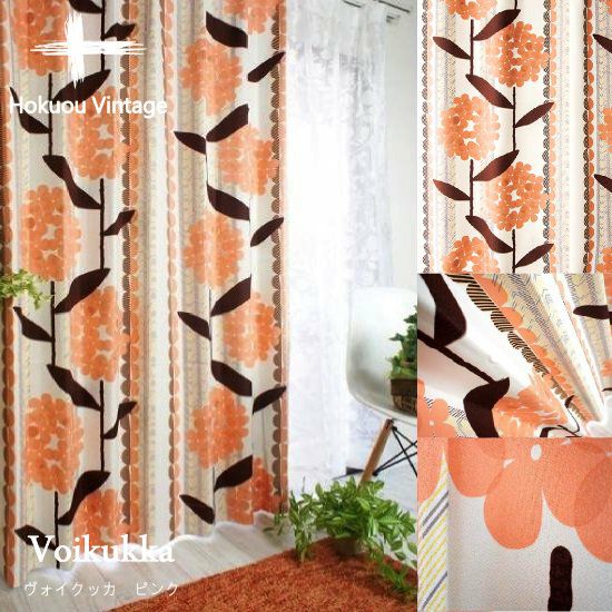 【北欧VINTAGE】 2級遮光・形状記憶付きカーテン <VOIKUKKA - ヴォイクッカ ピンク>