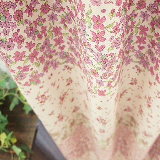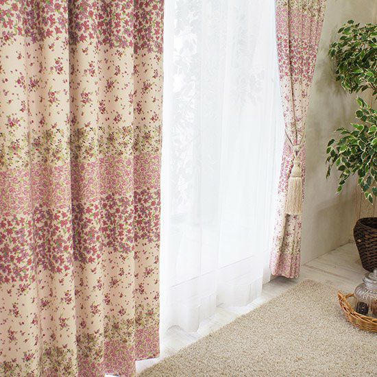 小花で作ったボーダーデザインのかわいらしいカーテンです。