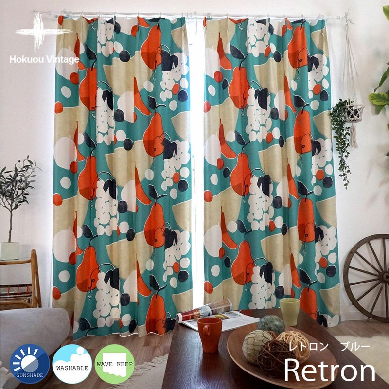 【北欧VINTAGE】2級遮光・形状記憶付きカーテン <Retron - レトロン ブルー>