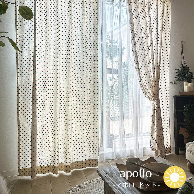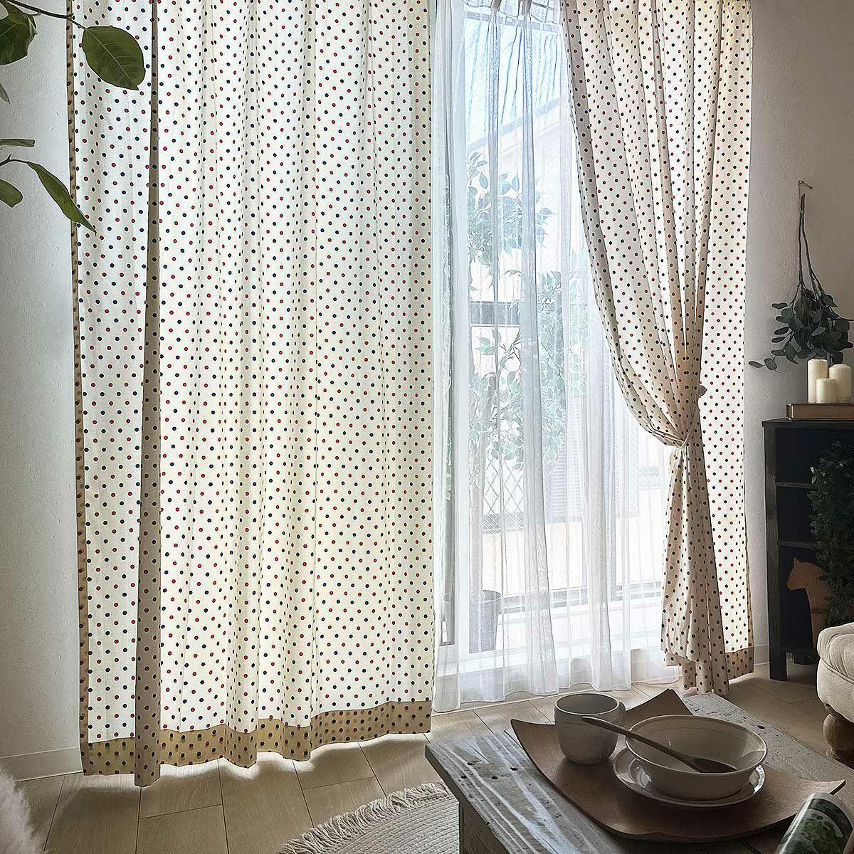 カラフルなドットが映えるナチュラルカーテン。