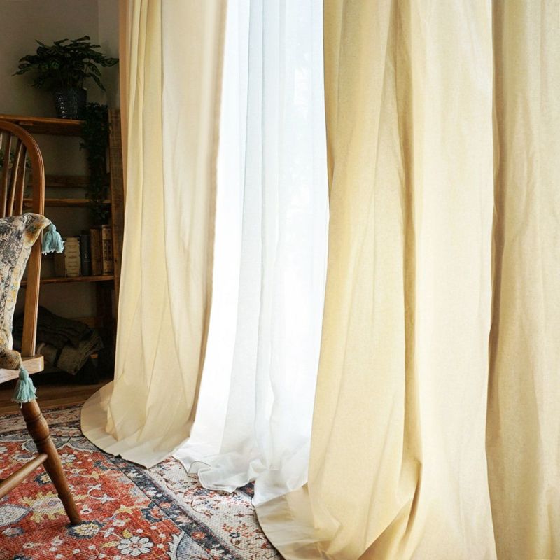 陽の光を受けて暖かな色味を映す100%ナチュラルなカーテン