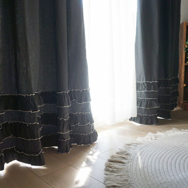 クシュクシュっとした3連フリルがたまらなくかわいいデニムカーテン!