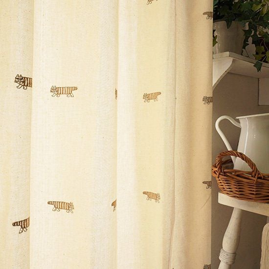 スウェーデンの陶芸家リサ・ラーソンのデザインをカーテンにしました。世界中で人気を得ている動物シリーズ。