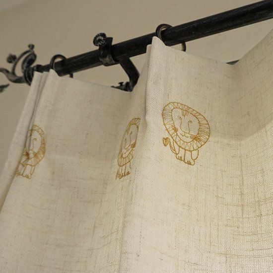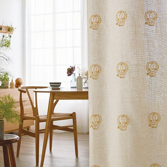 スウェーデンの陶芸家リサ・ラーソンのデザインをカーテンにしました。世界中で人気を得ている動物シリーズ。