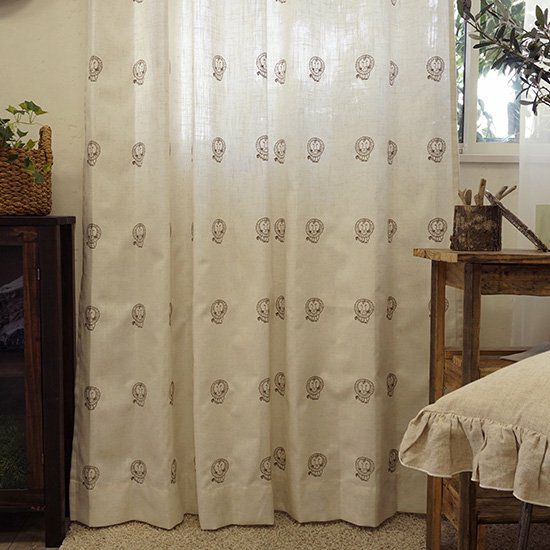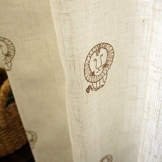 スウェーデンの陶芸家リサ・ラーソンのデザインをカーテンにしました。世界中で人気を得ている動物シリーズ。