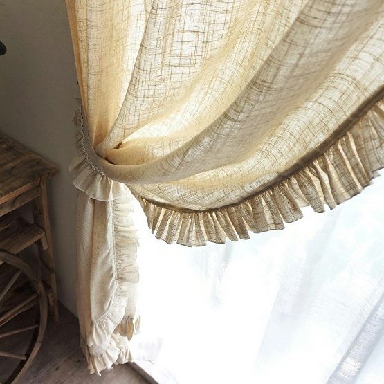 フリルがかわいいフレンチカントリーテイストの天然素材カーテンです。ナチュラル感抜群の麻20%使用!