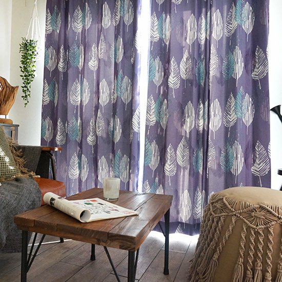 水彩画タッチで描かれたリーフ模様が存在感のあるカーテンです。
