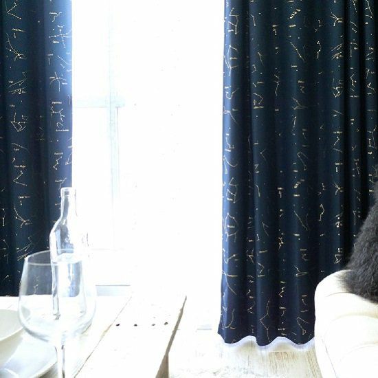 遮光生地に箔プリントで星座をデザインしました。そこに光が差すと、キラキラと反射して輝きます。