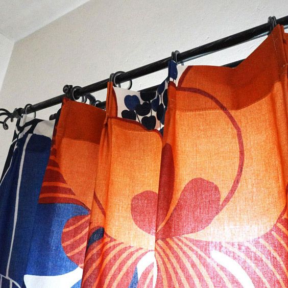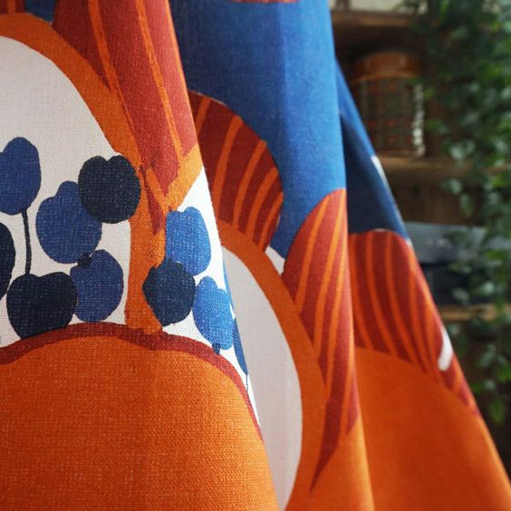 北欧のデザイナーがデザインした大きなフラワーデザインのカーテン <ainoa -アイノア オレンジ->