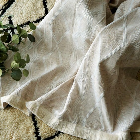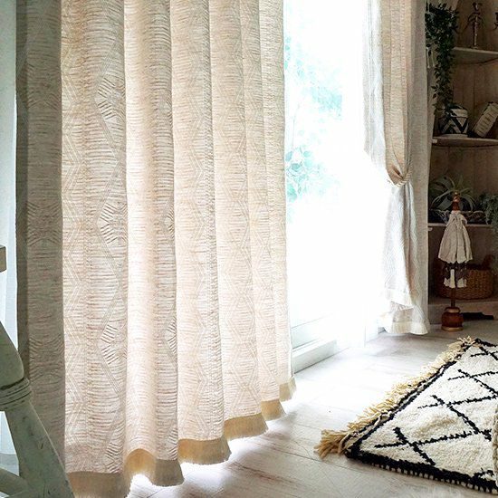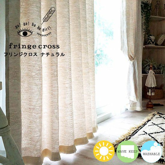 【go! go! BO HO GIRL!】 高級織柄・フリンジ付き・ほのかに明るい非遮光・形状記憶付カーテン<fringe cross -フリンジクロス グレー->※1.5倍ひだ オリジナル 非遮光 販売価格 ¥ 5,060 税込 お気に入りに登録する
