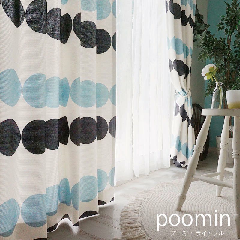 まるをモチーフにした幾何学模様がおしゃれなカーテン。
