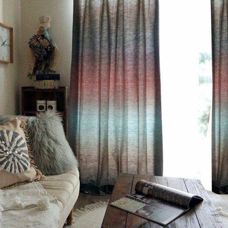 【ノスタルジアシリーズ】 素朴で美しいプロヴァンス風カーテン <Mirage - ミラージュ ダークレインボー>