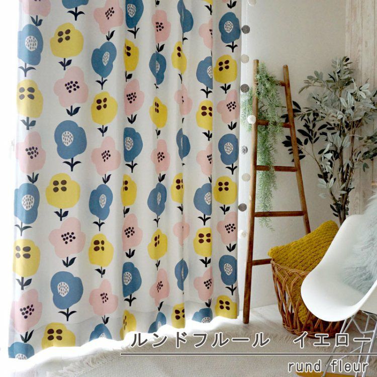 <北欧調>2級遮光・形状記憶・Horiuchi Eikoデザインのカーテン <ルンドフルール イエロー - rund fleur>