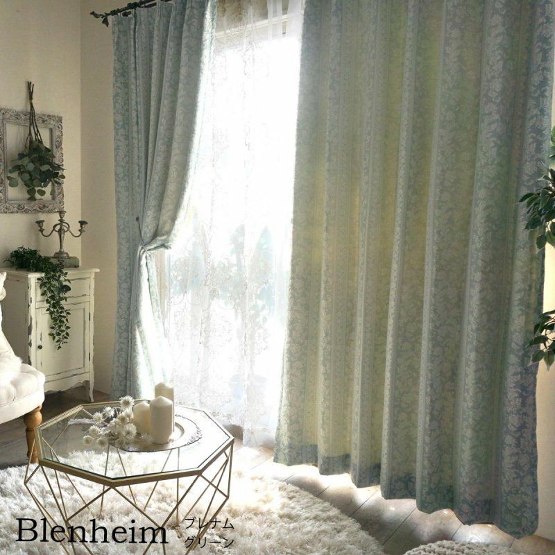 3. 裏地付「ダブル」 高級質感・形状記憶・遮熱・防音・遮光カーテン <ブレナム グリーン>