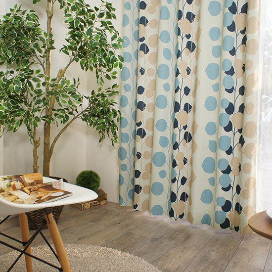 3. 【北欧VINTAGE】 100サイズ・遮光2級・北欧デザインカーテン <ウペア ブルー>