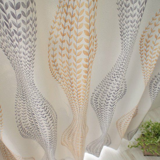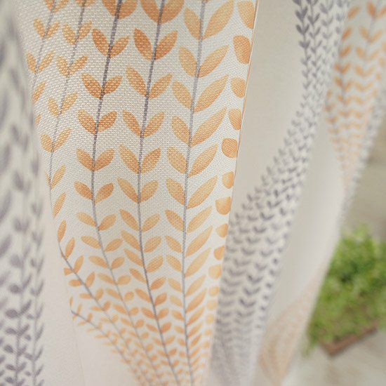 スパイラル形にデザインされたリーフ柄がおしゃれなカーテンです。