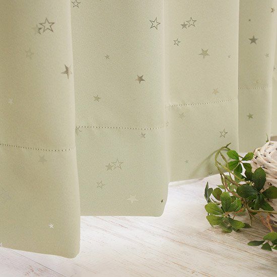 <子供部屋に!>1級遮光・ウォッシャブル・形状記憶カーテン <きらきら星 グリーン>