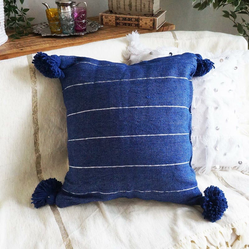 スタッフがモロッコ現地で仕入れたボンボン付きの可愛いクッションカバー。