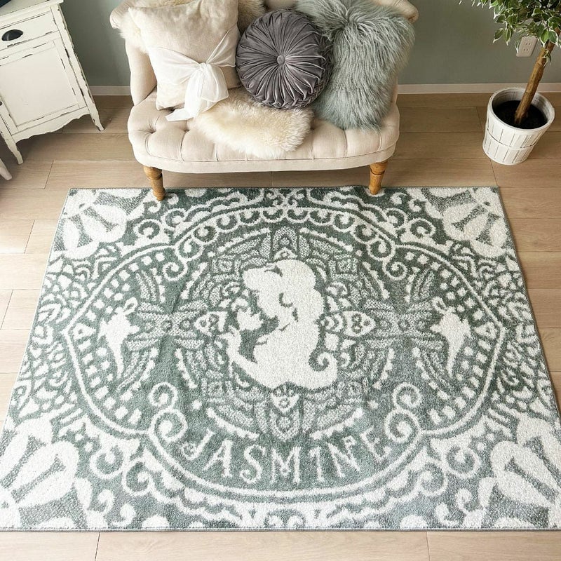 繊細なアラビック模様とジャスミンが描かれたデザインラグ。