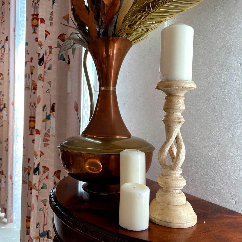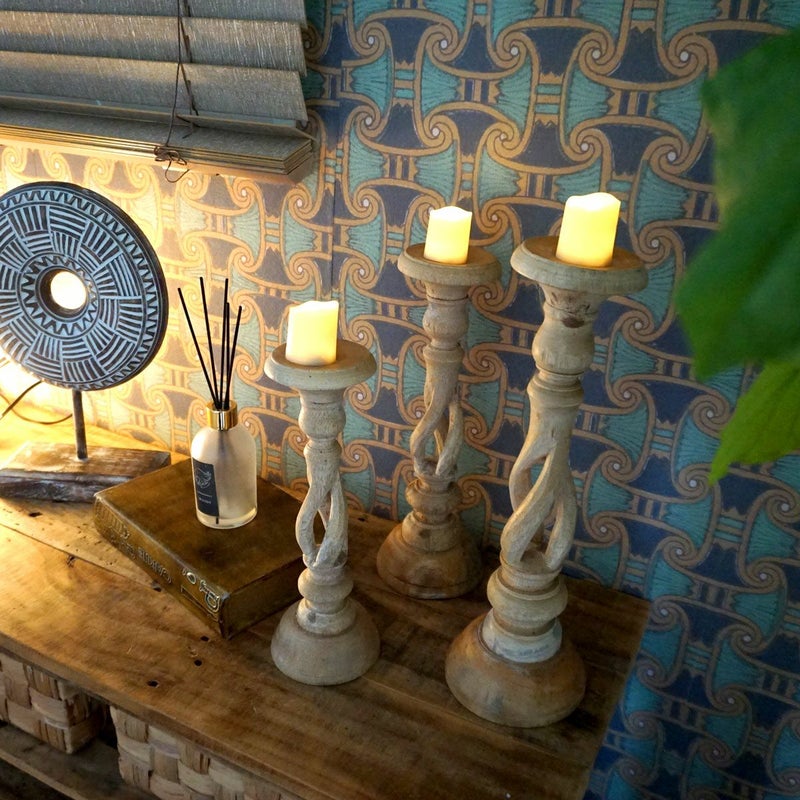 バリ島の職人が手彫りしているウッドキャンドルスタンド。
