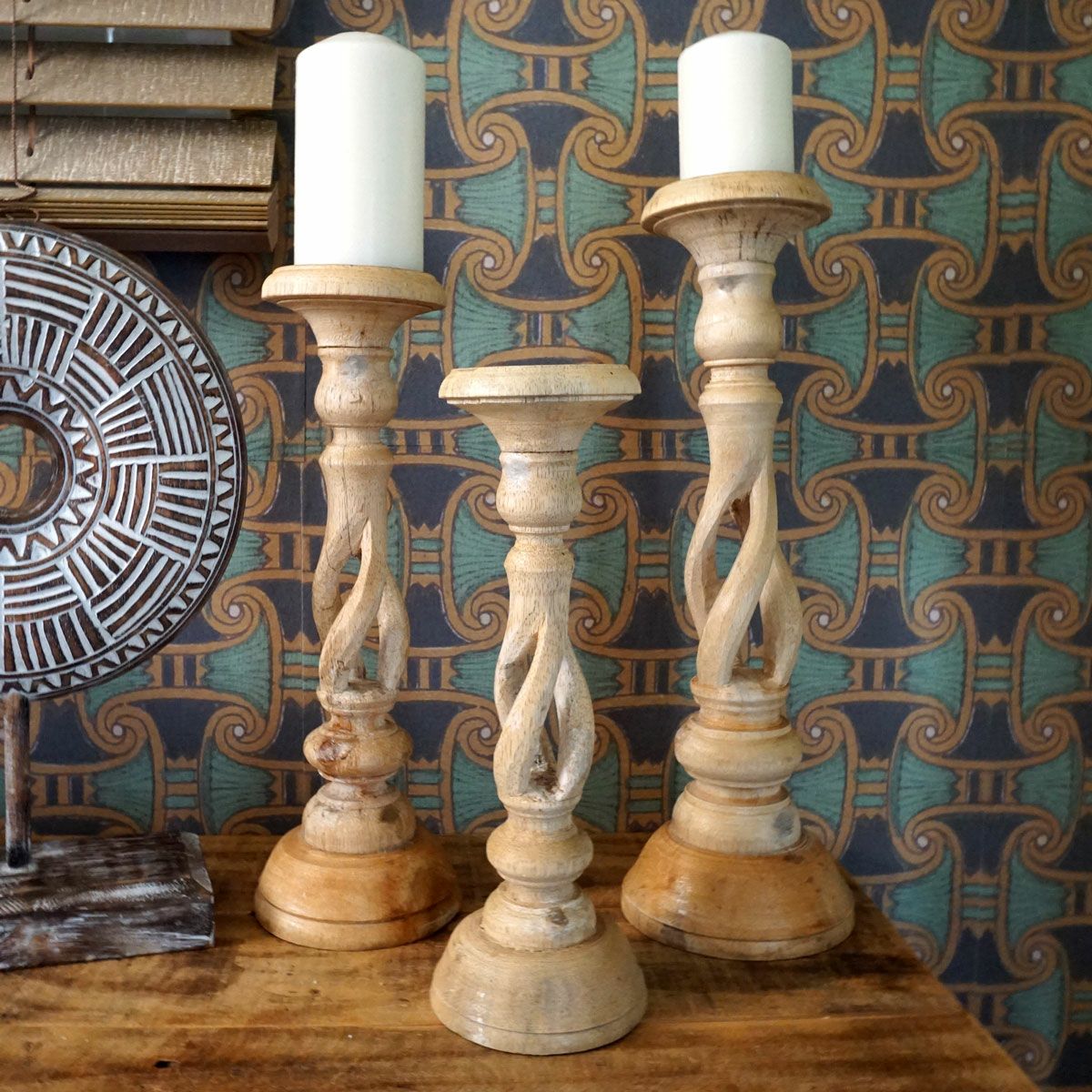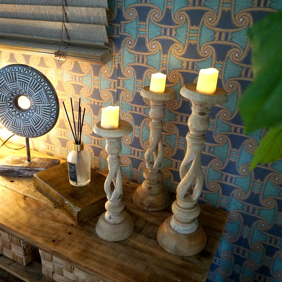 【NOTOSGLYPH -ノトスグリフ-】バリ島で手作りされたウッドキャンドルスタンド<タリ>3サイズ