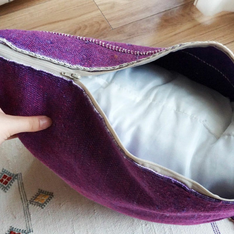 手織りのラグをそのままクッションカバーにしております。