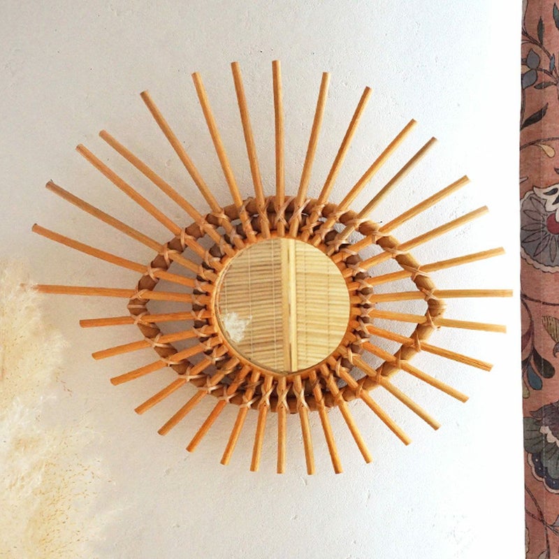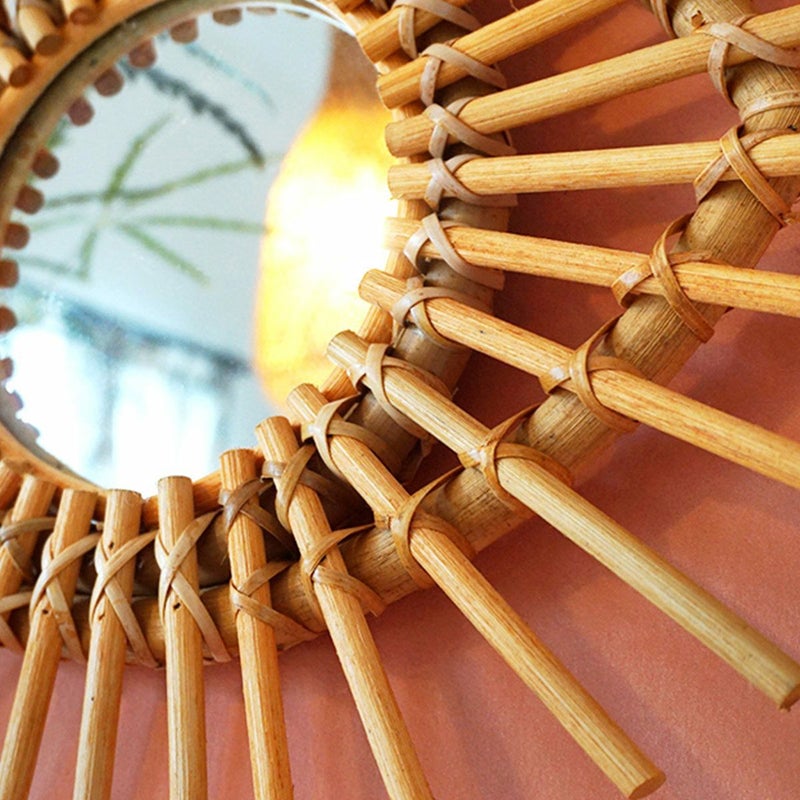 天然素材のラタンで作られたおしゃれなウォールミラーです。