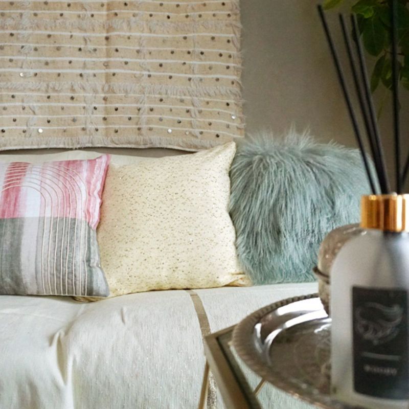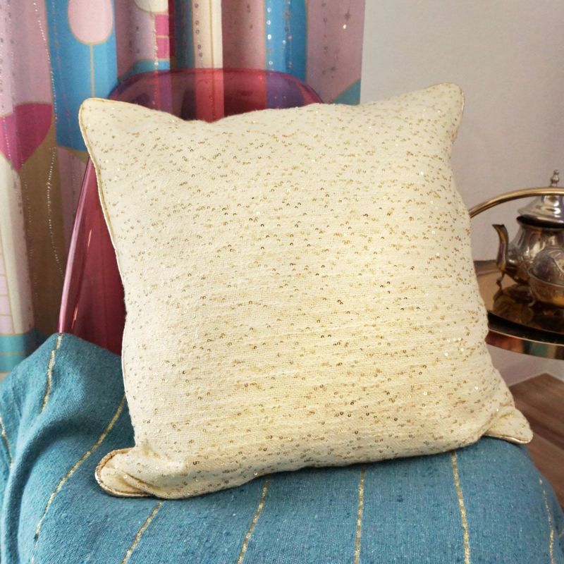 手織りのラグや他のキラキラクッションカバー、エスニックな雰囲気の小物とも相性抜群!