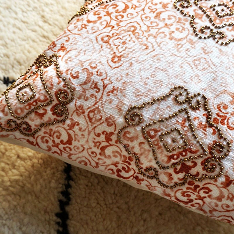 エスニックなモロッカンタイル柄のデザインがユニークなクッションカバー。