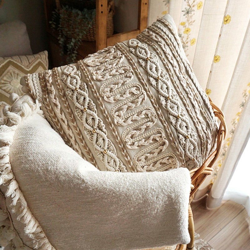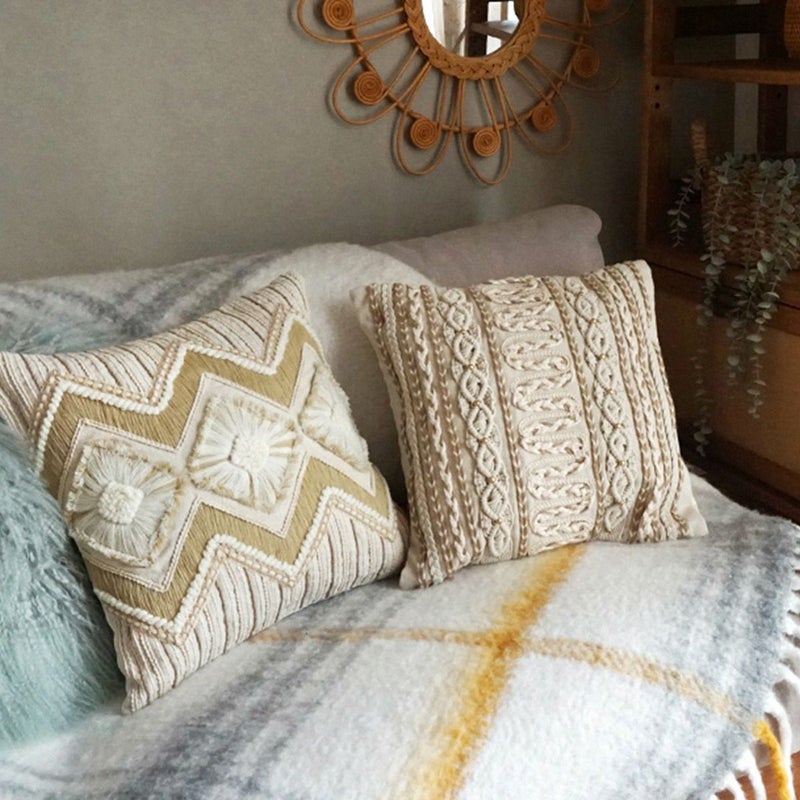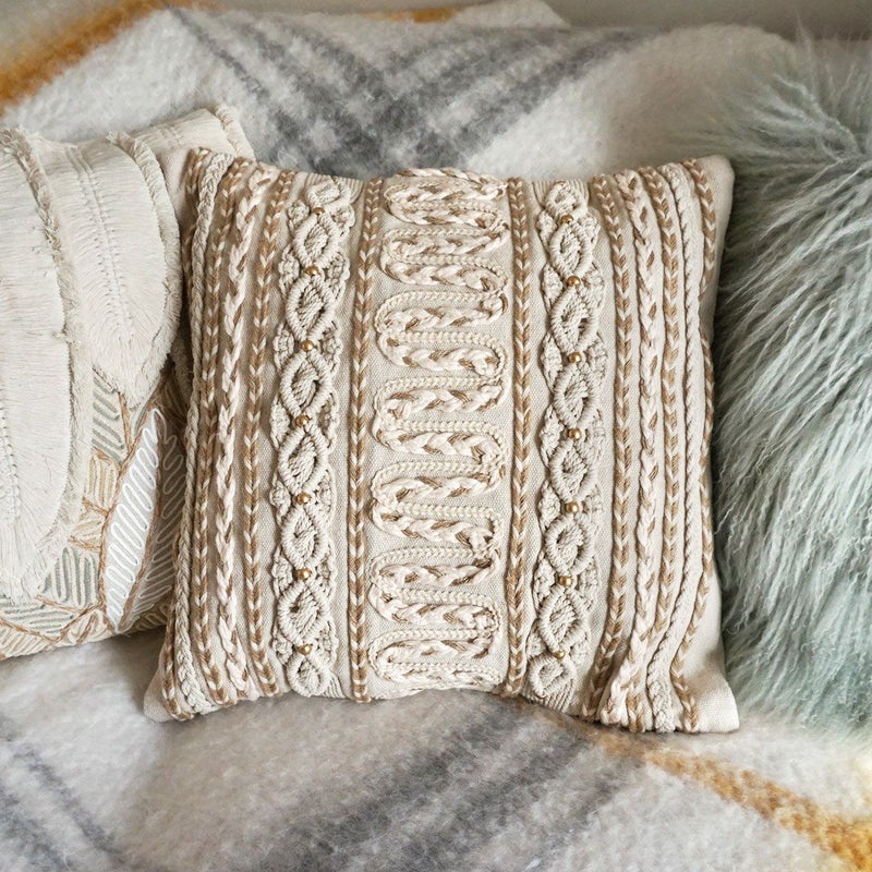 ナチュラルで合わせやすいデザインが王道な印象のクッションカバー。