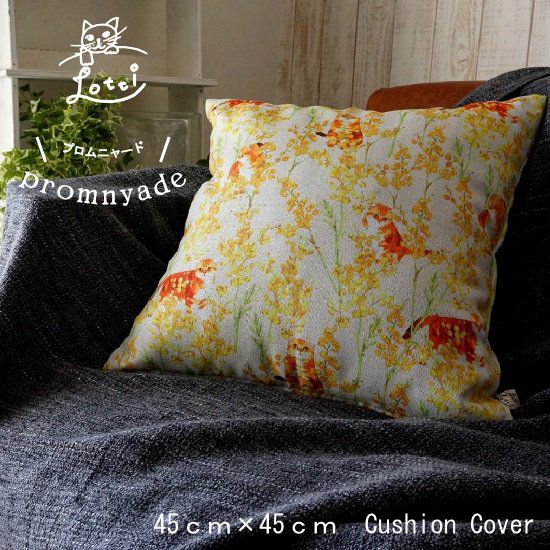 Lotti 可愛い猫ちゃんのデザインのクッションカバー<promnyade-プロムニャード-> 45cm×45cm