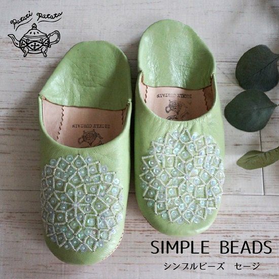 他の画像を見る 【Patai Patata】バブーシュ M・Lサイズ(22~26cm) <シンプルビーズ ミントグリーン>:1セット 販売価格 ¥ 3,630 税込 びっくりカーテンがモロッコの職人と1から制作するオリジナルデザインのバブーシュです。 カートに入れる お気に入りに登録する