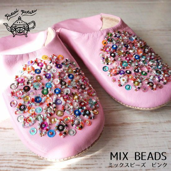 5. patati-patata・バブーシュ M・Lサイズ(22~26cm) <ミックスビーズ ピンク>:1セット