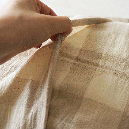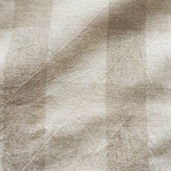 最大の特徴はウォッシュド(一度水洗いをしている)のため、天然素材特有の縮みがほとんど生じないという点です。洗いをかけることにより生地は柔らかくなり、色合いもさらにナチュラルな雰囲気に。