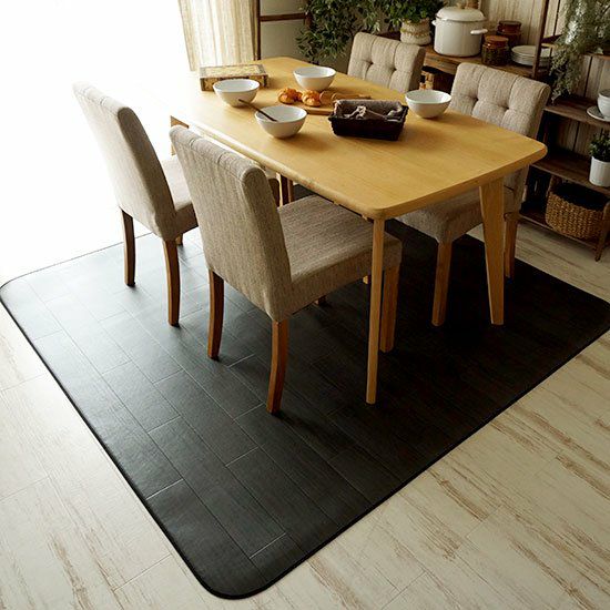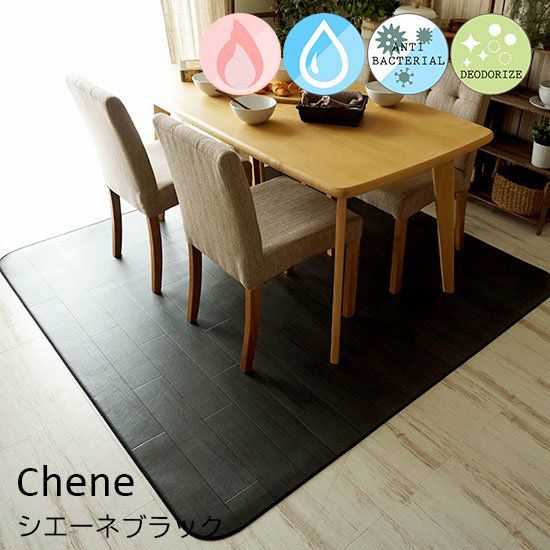 さっと拭くだけお手入れカンタン!撥水・抗菌・防カビ・防炎加工 クッションフロア ダイニングラグ< Chene-シエーネブラック- >●代引き不可商品●182X182~300cm:4サイズ