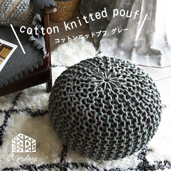 コットン100%の太紐をハンドメイドで丁寧に編み込み、クッション材を入れたプフです。