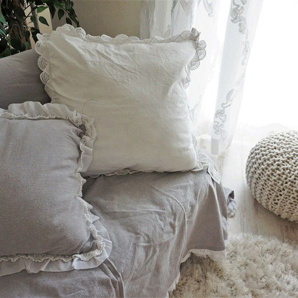 当店のプライベートブランド<ホームスウィートレシピ>より、フェミニンで可愛いクッションカバーのご提案です。ベッドリネンのコーディーネートに組み合わせいただいたり、ソファーの背当てとしてご使い下さいませ。