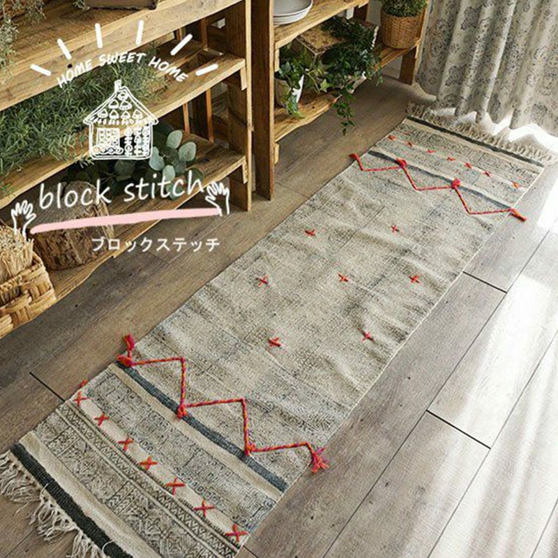 ハンドブロックプリントインドラグ・ナチュラルでかわいい周囲にステッチがおしゃれ【HOME SWEET HOME】<block stitch ブロックステッチ>:3サイズ 代引不可 販売価格 ¥ 14,520 税込 〜 販売価格 ¥ 税込 お気に入りに登録する