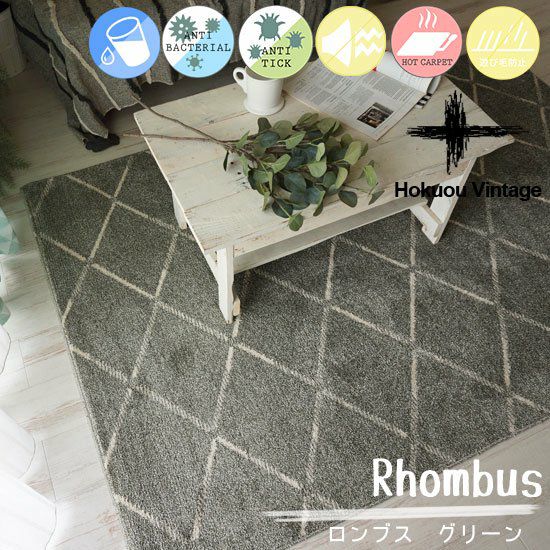 びっくりする程汚れが落ちるPTT繊維防汚加工のアクセントラグ< Rhombus - ロンブス グリーン ->●代引不可●:3サイズ