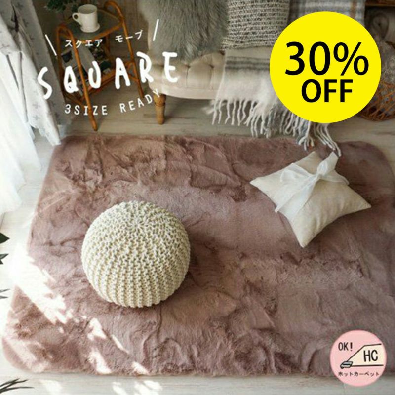 ★30%OFF★【ラグモアオリジナル】とろける肌触り、もふもふのエコファーラグ・床暖対応<モッフィー スクエア モーブ>:3サイズ