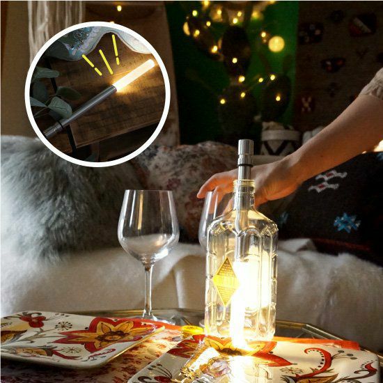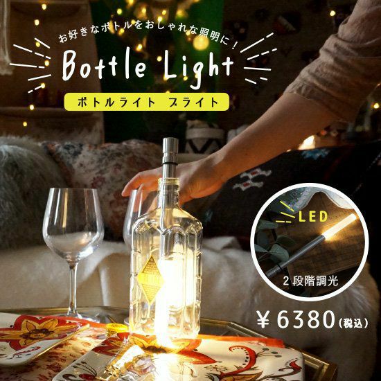 【商品説明】 ワインやシャンパン、日本酒などのお好きな空ボトルに入れて照明として使用できる電池式のLEDライトです。 照明やキャンドルを使った空間演出が盛んなドイツで生まれた新発想のアイテム。 温かみのある雰囲気を演出してくれます。メインの照明を消してリラックスタイムをお過ごしください! また、耐水性があるので屋外でもご使用いただけます!ホームパーティーやキャンプ、グランピングにもぜひご活用ください。 ネット通販初!!びっくりカーテンだけの販売です。プレゼントにもおすすめのアイテムです。 ≪ボトルライト レインボー ≫ 25色を4段階で調光できるタイプです。ゆっくりと色が変化するグラデーションモードも備えています。 電球色の温かみのある色はもちろん、様々な色でお部屋の雰囲気を作り出すことができます。 単三電池3本をセットしてご使用いただきます。光源はLEDですので熱を持たず長寿命です。 お好きなボトルのアレンジで空間演出をお楽しみください! 【商品詳細】 ドイツ製 サイズ:直径2cm 長さ26.2cm 重量:約105g 材質:アルミニウム・アクリルガラス 光源:LED 機能:25色+グラデーションモード・4段階調光・耐水(垂直位置での屋外使用・降雨に対応可能) 電源:単3電池×3本 点灯時間:40~120時間 ご注意:電池及びボトルは付属いたしませんのでご用意ください。