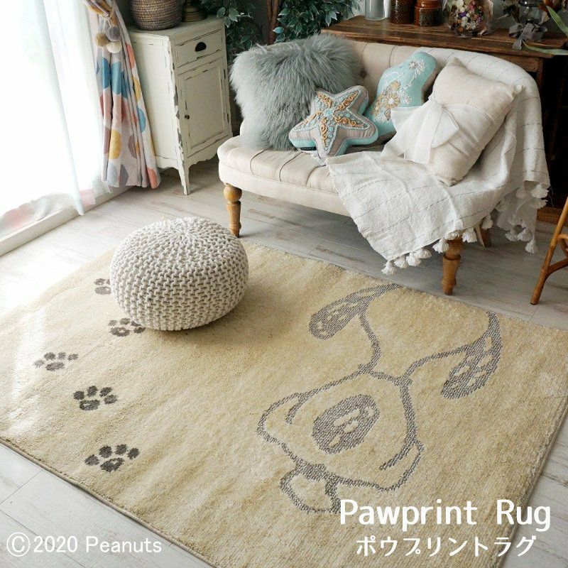 【 商品特徴 】 砂浜を散歩するスヌーピーと残された足跡がとってもキュートなラグ。