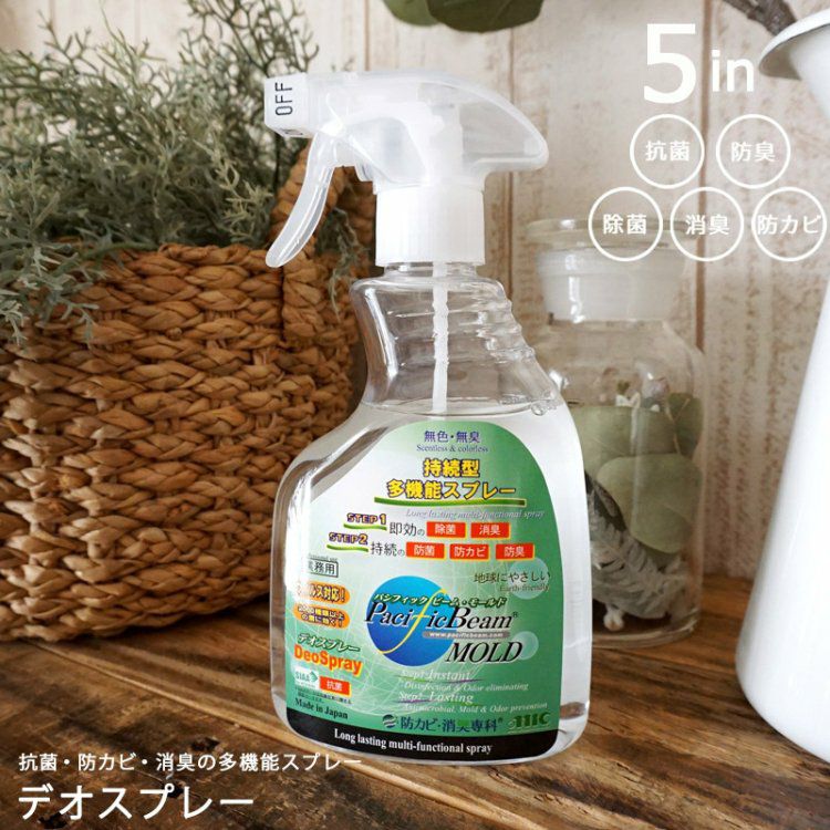除菌・抗菌・消臭・防カビ・防臭の5つの効果が1つになった多機能スプレーです。