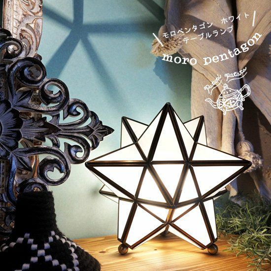 他の画像を見る ブック掲載品 送料無料 【PATATI PATATA】コーディネートアイテム テーブルランプ40W×1灯※LED電球対応可<モロペンタゴン ホワイト>※送料無料 販売価格 ¥ 33,770 税込 引掛けシーリングに取り付け可能な真鍮フレームの星形テーブルランプ。LED電球も対応可能。※送料無料 カートに入れる お気に入りに登録する