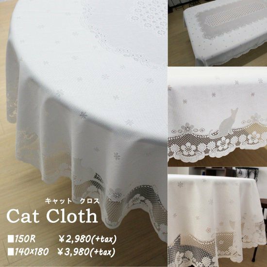 猫のシルエットが可愛いテーブルクロスです。