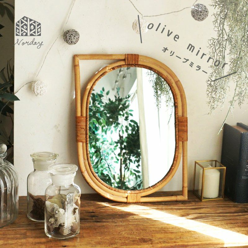 職人が一つひとつ手作業で作製したラタンのミラーです。