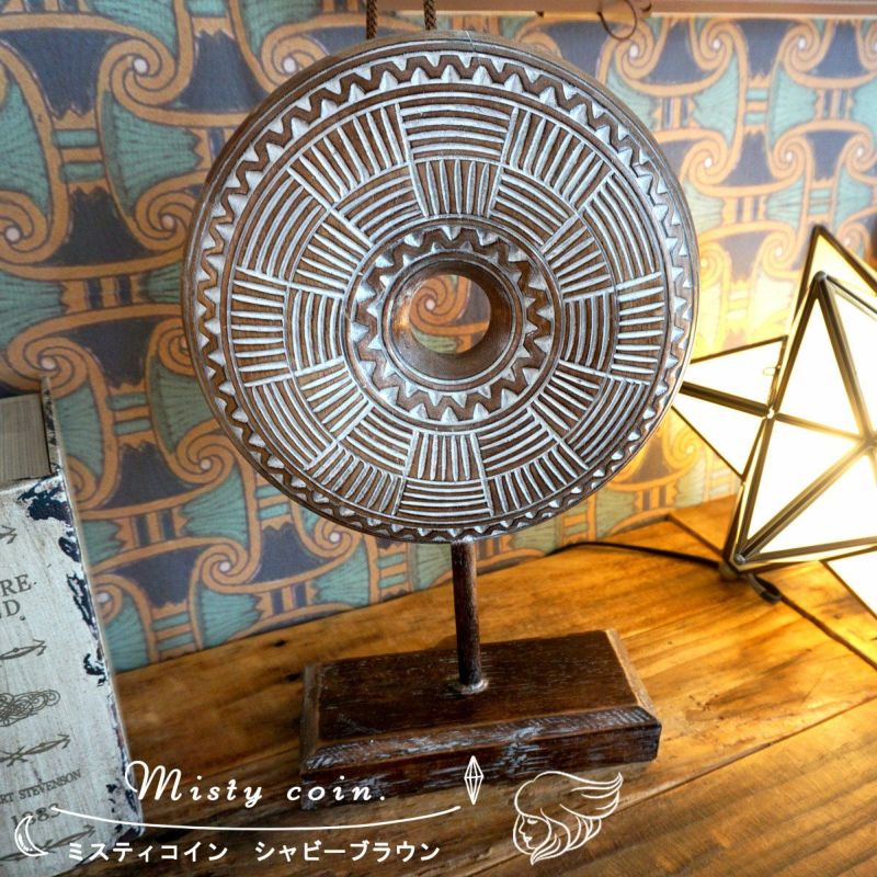 5. 【NOTOSGLYPH -ノトスグリフ-】バリ島で手作りされたコインモチーフの木製オブジェ <ミスティコイン シャビーブラウン>