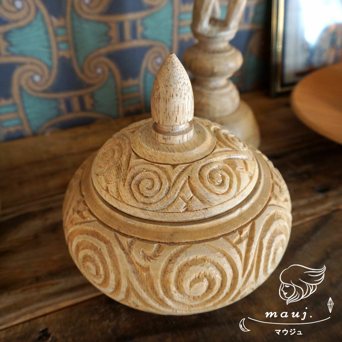 【NOTOSGLYPH -ノトスグリフ-】バリ島で手作りされた手彫りデザインが美しい木製の小物入れ <マウジュ>2サイズ