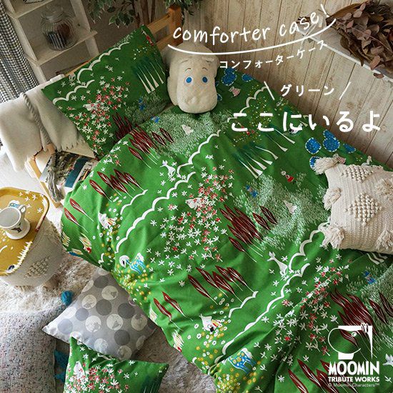 【MOOMIN -ムーミン- 】 ムーミンのかわいいコンフォーターケース<ここにいるよ グリーン>